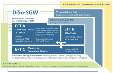 Koordiniert wird das Projekt von der Universität Bamberg (Prof, Brüggemann). Neben der FAU als zweitgrößtem Partner im DiSo-SGW-Verbund (Leitung Prof. Frederking) sind das Leibniz-Instituts für Bildungsverläufe (LIfBi) in Bamberg sowie die Universitäten Bremen, Chemnitz, Göttingen, Hamburg, Köln, München, Münster, Regensburg, Tübingen und Würzburg beteiligt.
